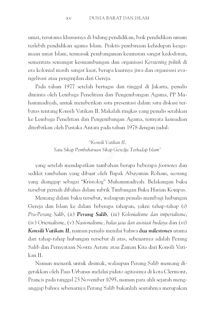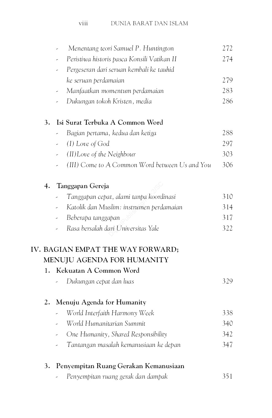 Buku karya Sudibyo Markus ini sangat membantu dalam melihat berbagai ‘PR’ yang harus dikerjakan kedua belah pihak. Oleh karena itu, karya ini bukan sekadar memperkaya literatur terkait subjek hubungan kedua dunia ini sepanjang sejarah, tetapi sekaligus dapat mengilhami pemikiran untuk mengembangkan hubungan lebih harmonis. Dalam konteks ini, kita sangat berterima kasih kepada Sudibyo Markus, dan kemudian juga kepada para pembaca karya ini’.