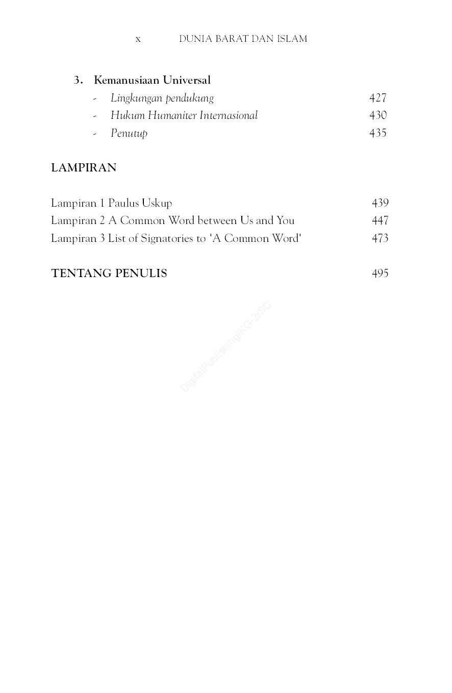 Karya yang membahas hubungan Dunia Barat dan Islam umumnya dikerjakan oleh sarjana Barat dengan sudut pandangnya masing-masing. Untuk publik Indonesia kajian tentang masalah ini nyaris absen”. “Oleh sebab itu karya Dr. Sudibyo Markus ini patut disambut dan diapresiasi sebagai upaya serius yang mengupas hubungan dua komunitas agama yang secara teori sama-sama berkiblat kepada Episentrum Spiritual Nabi Ibrahim”.
